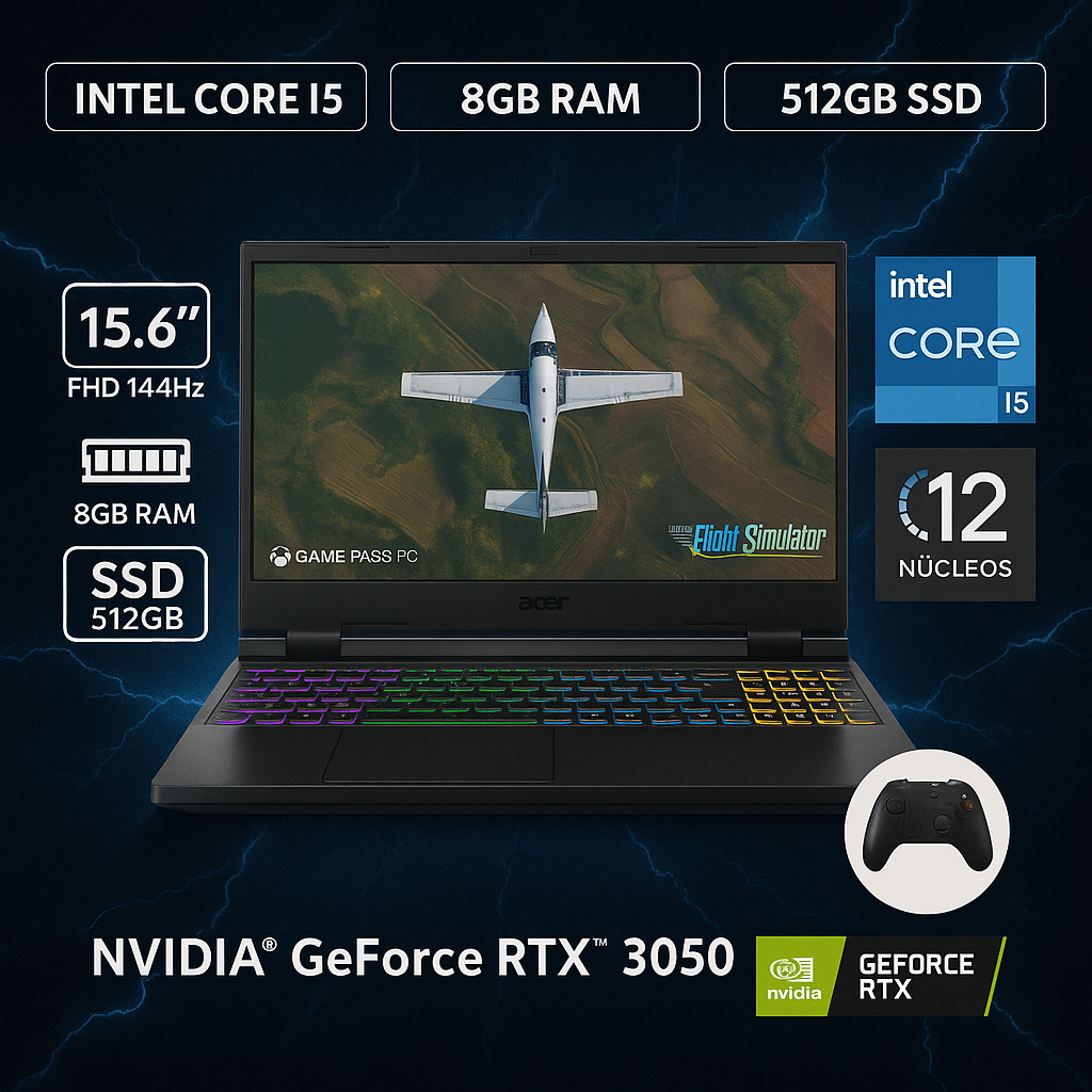 Sabemos que, como gamer, buscas la mejor combinación de potencia y precio. Este Acer Nitro 5 i5 te ofrece precisamente eso. Su procesador Intel Core i5 de 12ª generación y su tarjeta gráfica NVIDIA GeForce RTX 3050 te permiten disfrutar de tus juegos favoritos con una calidad visual increíble y una fluidez sorprendente.